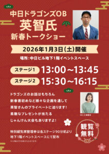 中日ドラゴンズOB 英智氏トークショー決定!