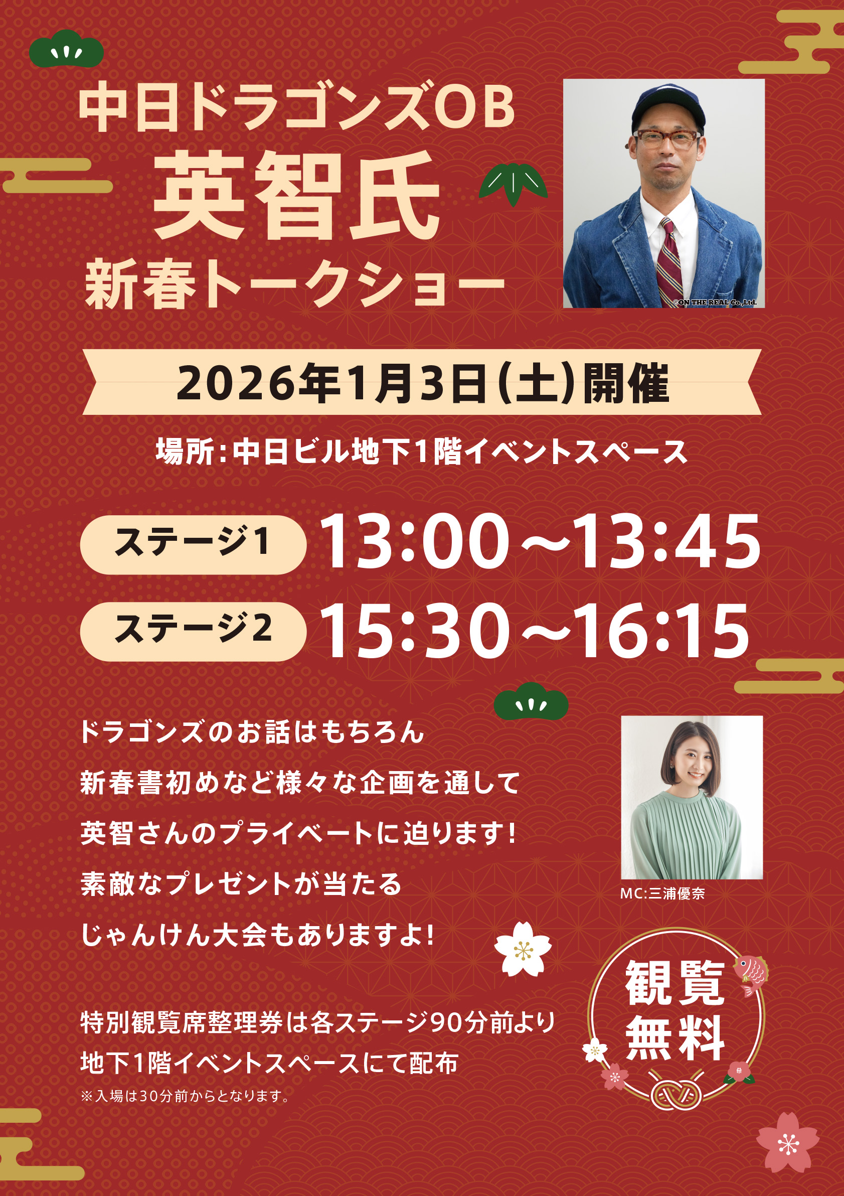 出演:中日ドラゴンズOB 英智 MC 三浦優奈