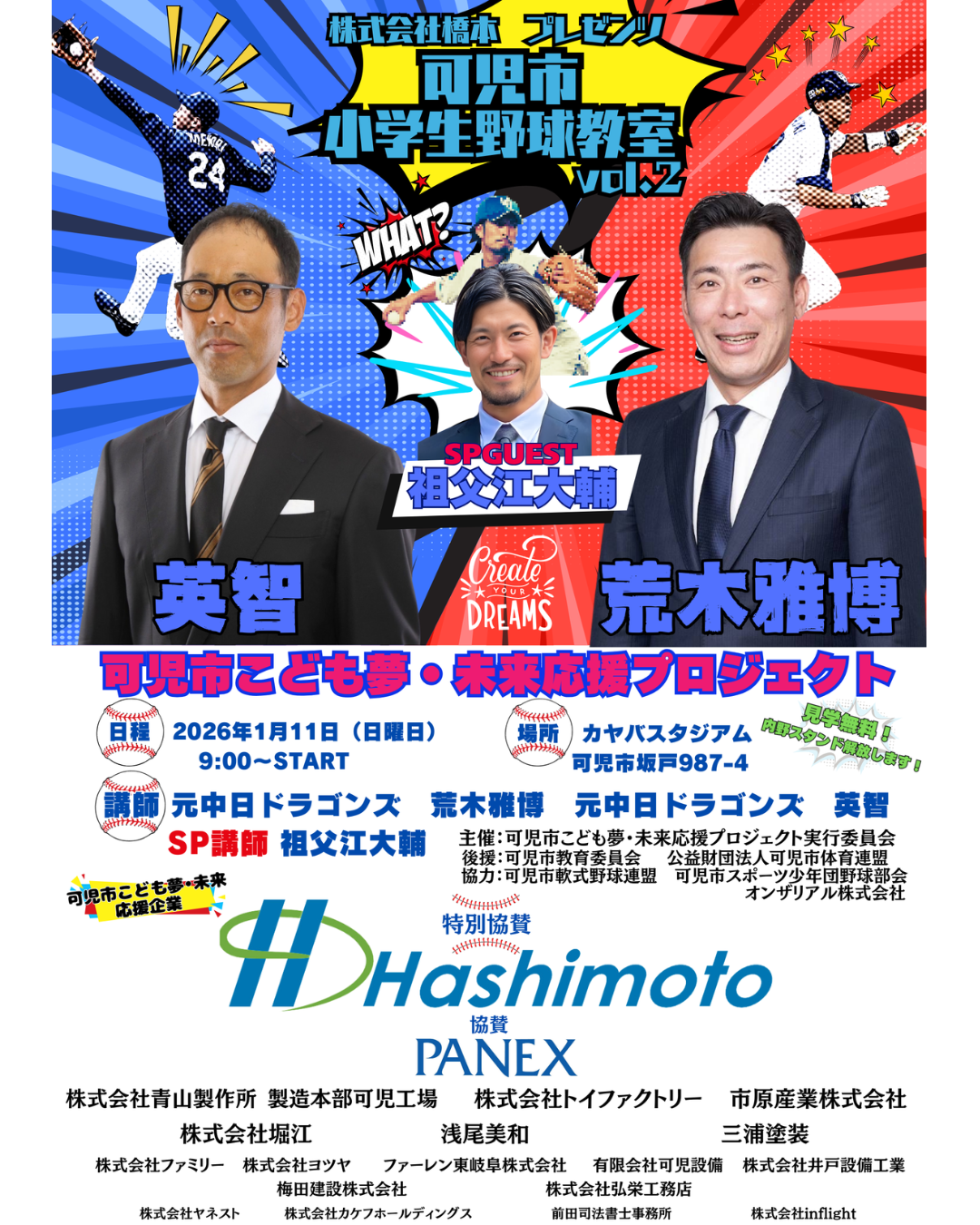 中日ドラゴンズOB 荒木雅博氏&英智氏 トークショー・野球教室決定!